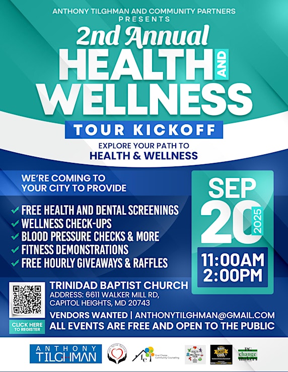 A countywide kickoff event promoting wellness, opportunity, and community resources.  Date & Time Saturday, September 20, 2025, from 11:00 AM – 2:00 PM    Location 6611 Walker Mill Road Capitol Heights, MD 20743