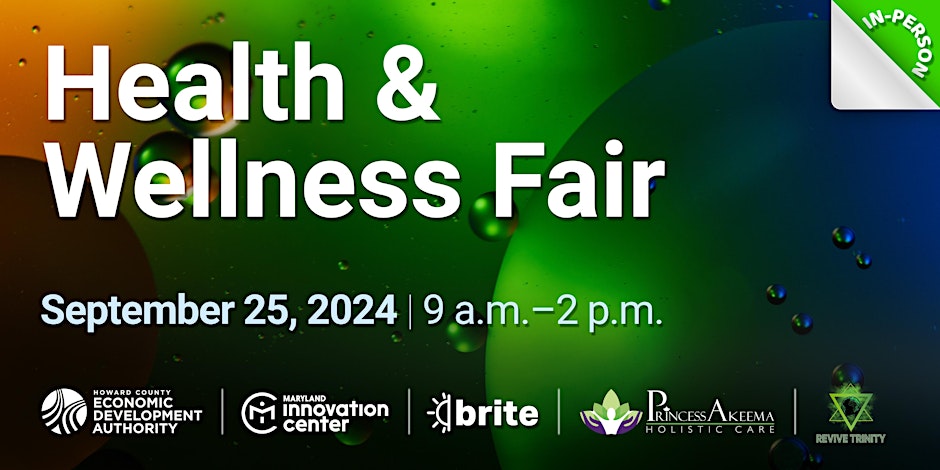 A free, vibrant fair hosted by HCEDA in collaboration with local wellness providers—ideal for exhibitors and attendees interested in holistic health resources.  Date & Time Wednesday, September 25, 2025, from 9:00 AM – 2:00 PM  Location Maryland Innovation Center, 6751 Columbia Gateway Drive, Columbia, MD